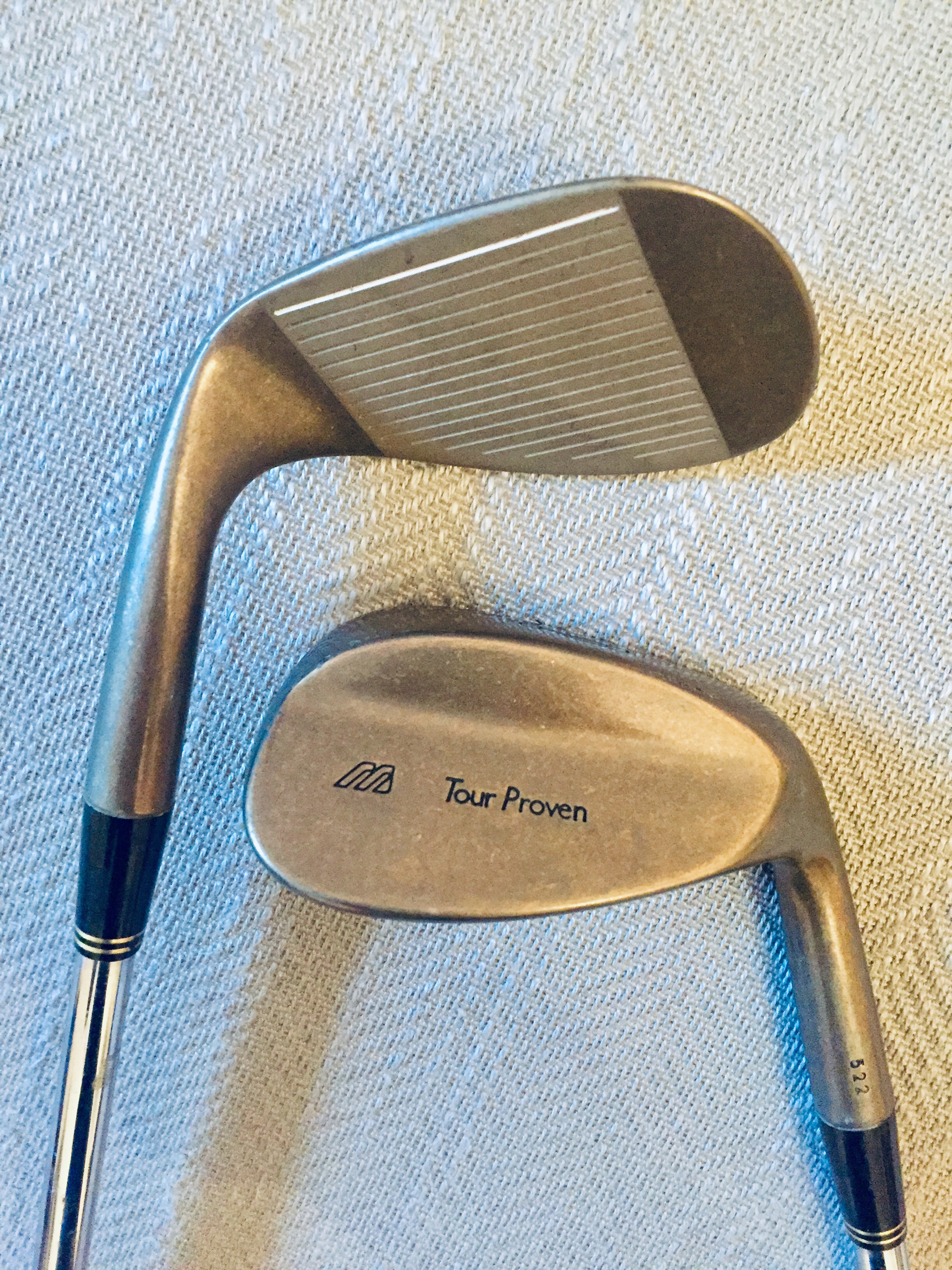 1989 release. These were cool. Available as TP-9 shape and three different bladed heads and two lofts, although the sole was stamped with just “P” or “S” (lofts were on the neck). The TP522 was known as the “Nakajima wedge”. Everyone was doing beryllium copper, Mizuno went aluminium bronze. So soft.
