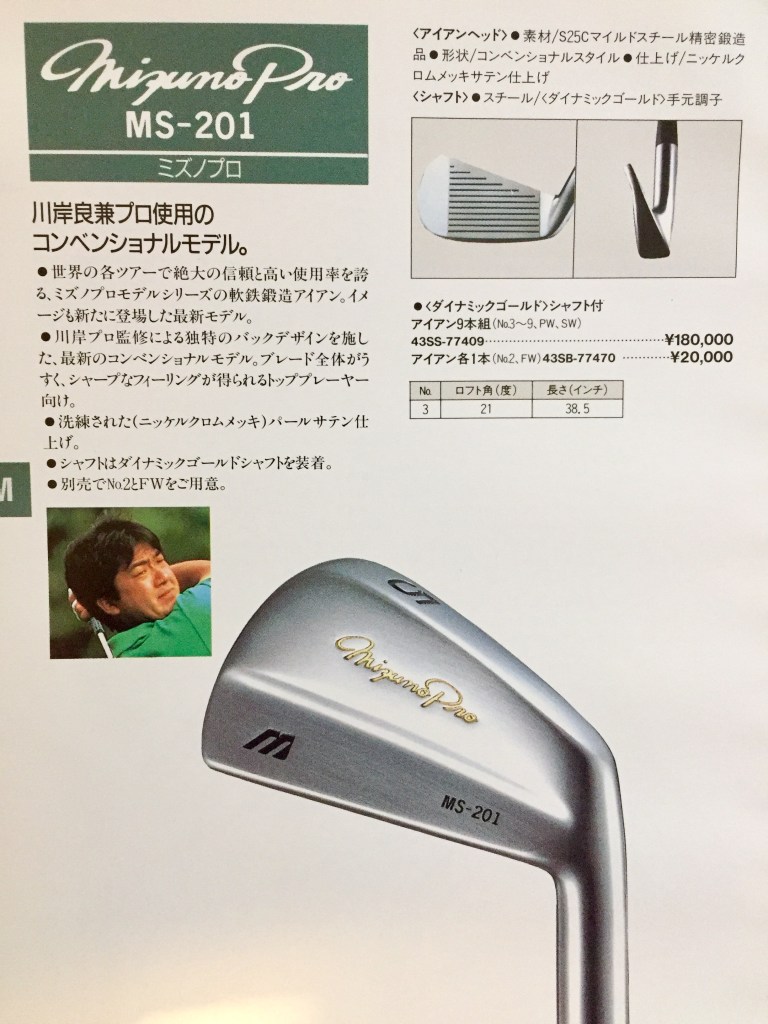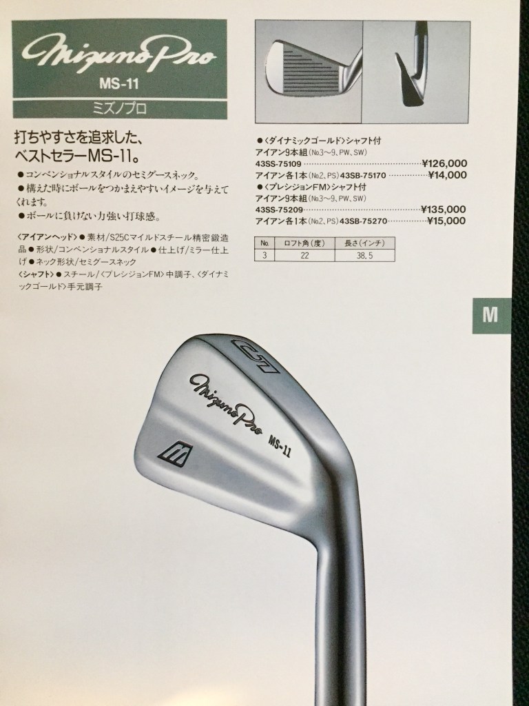 This blog post gives details of the iron models with “MS” stamps. MS started in Japan in 1980 as an abbreviation for “Mizuno Staff” and quickly became established in the three major market (Japan, Europe and N. America). It always represented top-level equipment marketed for better golfers and professionals.