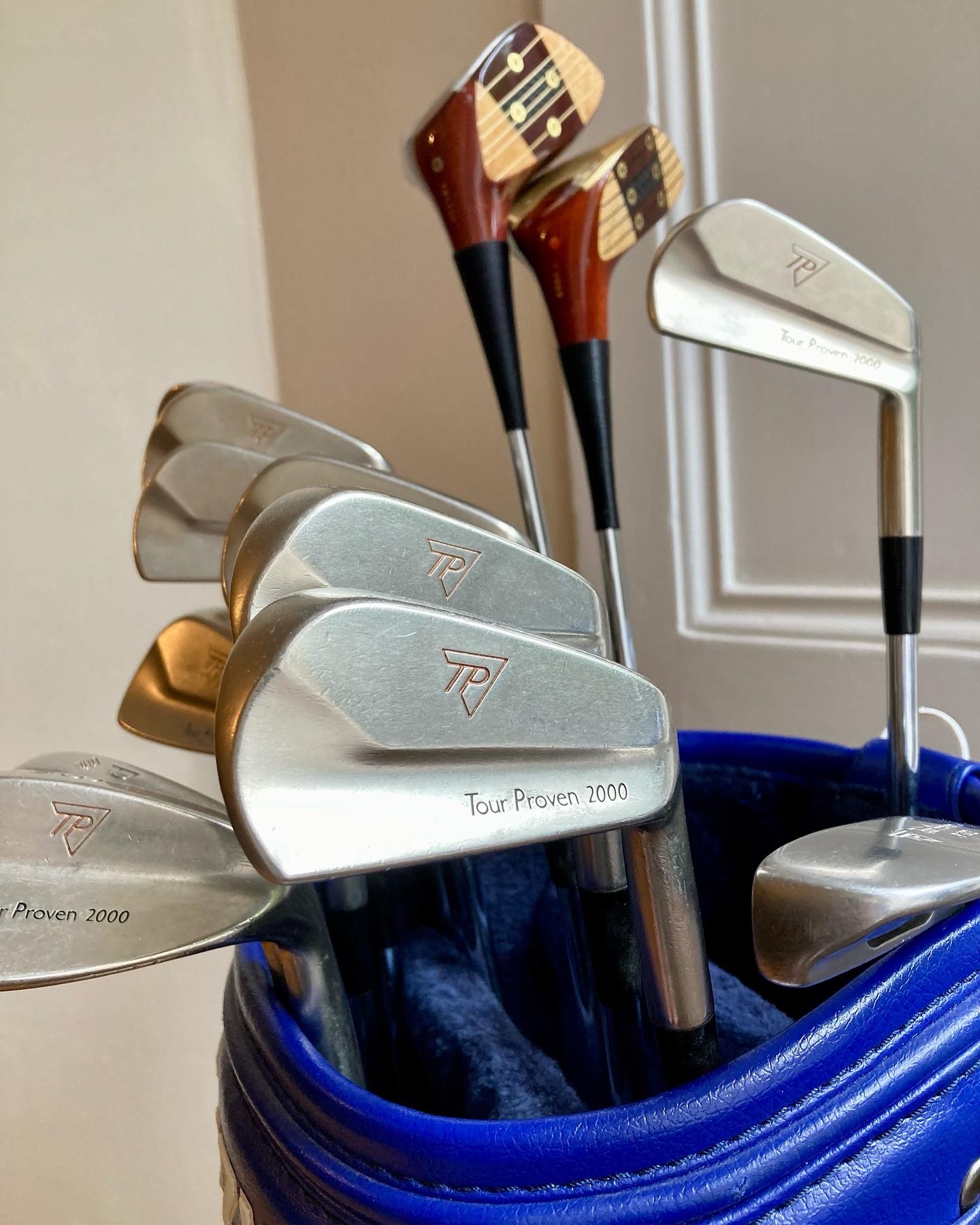 Limited edition model in 1993 to commemorate Mizuno receiving the Tournament Quality Award from the European Tour. 1000 sets. Based on the famous TN-87 set from Japan but forged with ceramic chrome and “champagne” finish. Blank TN-87s were bagged for Faldo’s two majors in ’90. Some tour sets were also stamped with TP branding – Frank Nobilo was a fan. TP-2000s didn’t get the adulation they perhaps deserved.